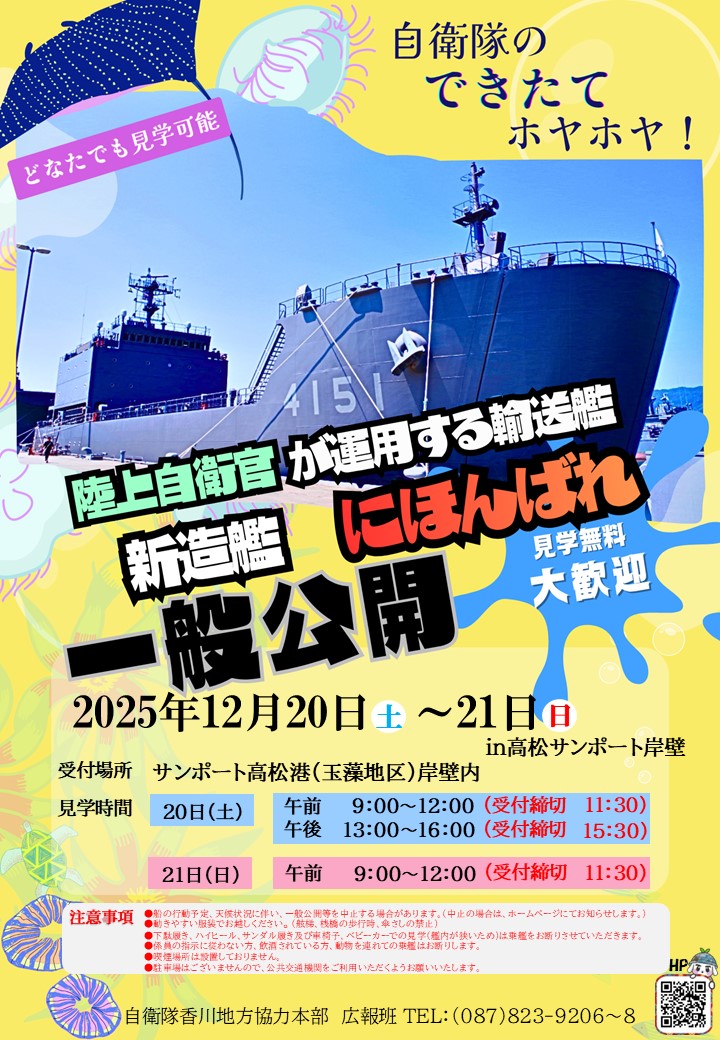 陸上自衛官が運用する輸送艦「新造艦 にほんばれ 一般公開」